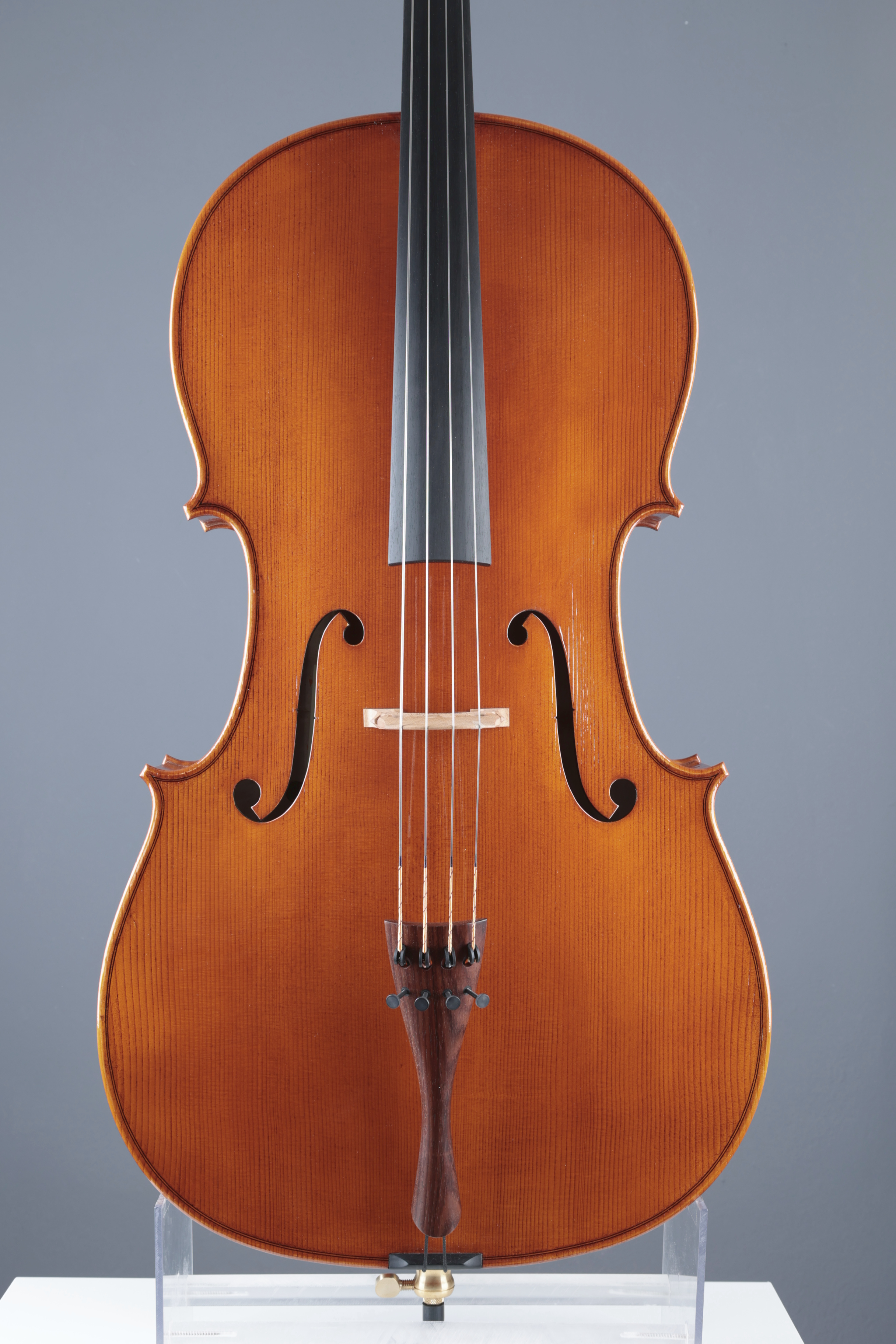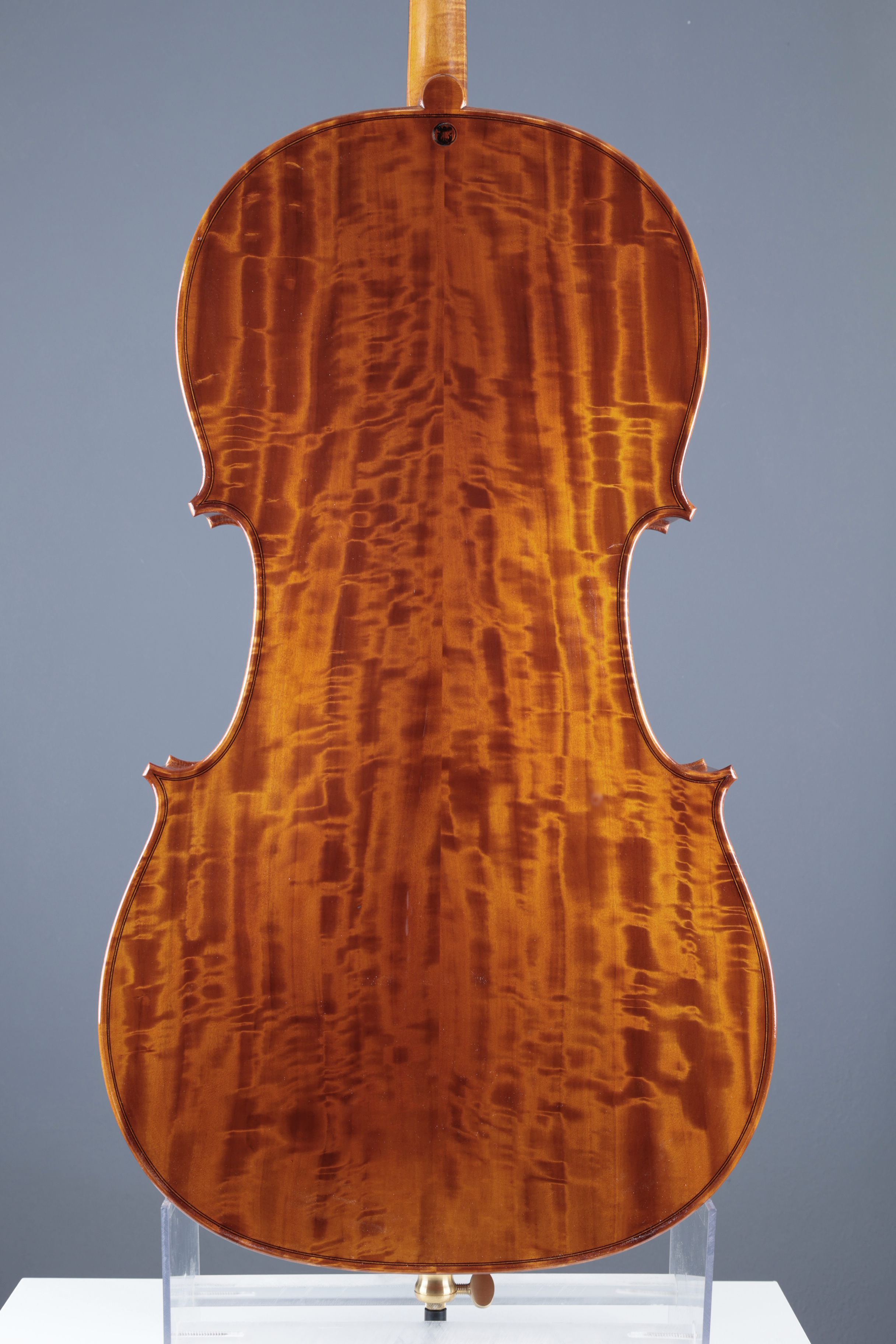 Wunderschönes leuchtendes Meistercello "Lombardian Sun", gebaut 2025 von Rainer W. Leonhardt in Mittenwald.