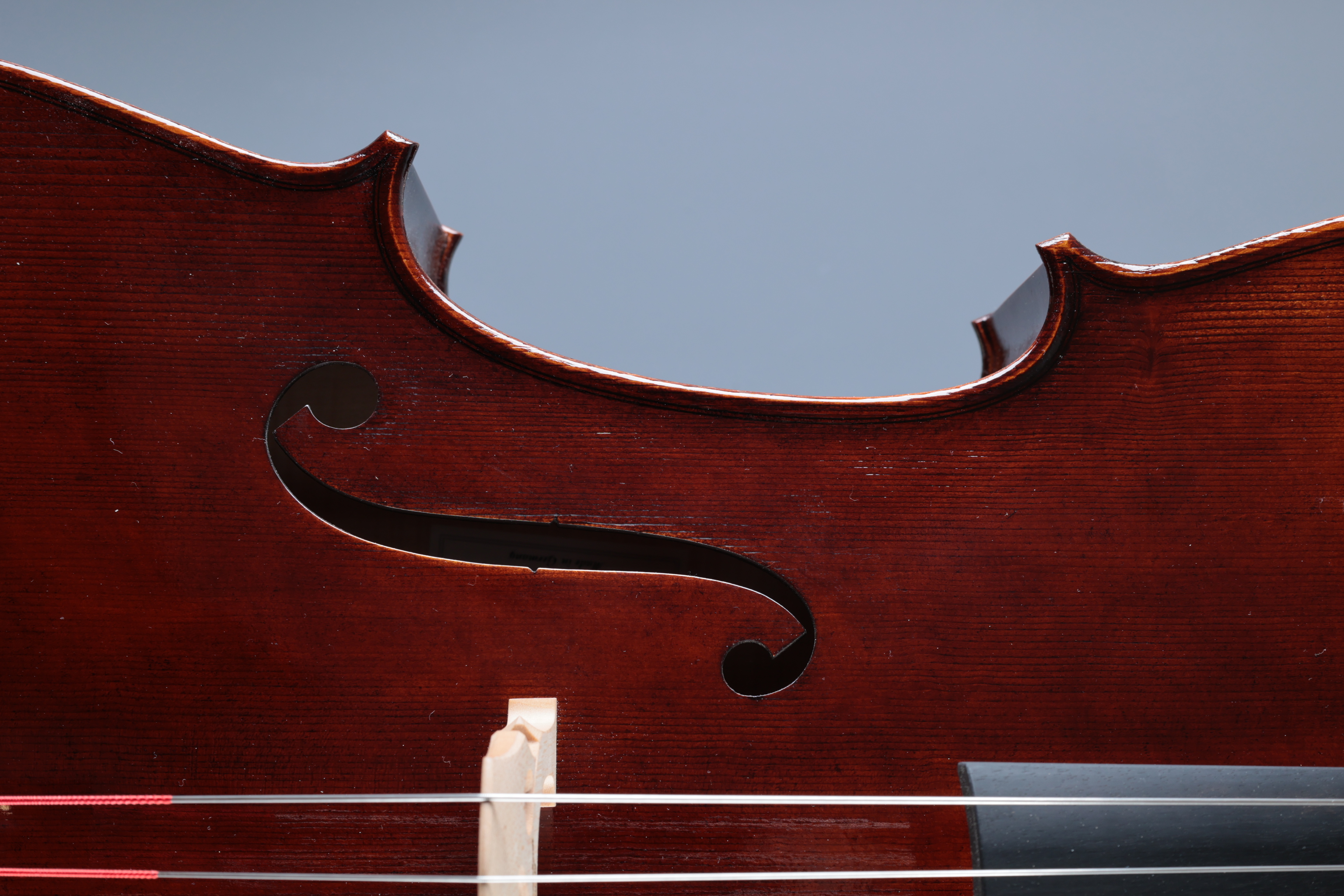 Schönes dunkles Meistercello "dunkler Herbst", gebaut 2025 von Rainer W. Leonhardt in Mittenwald.
